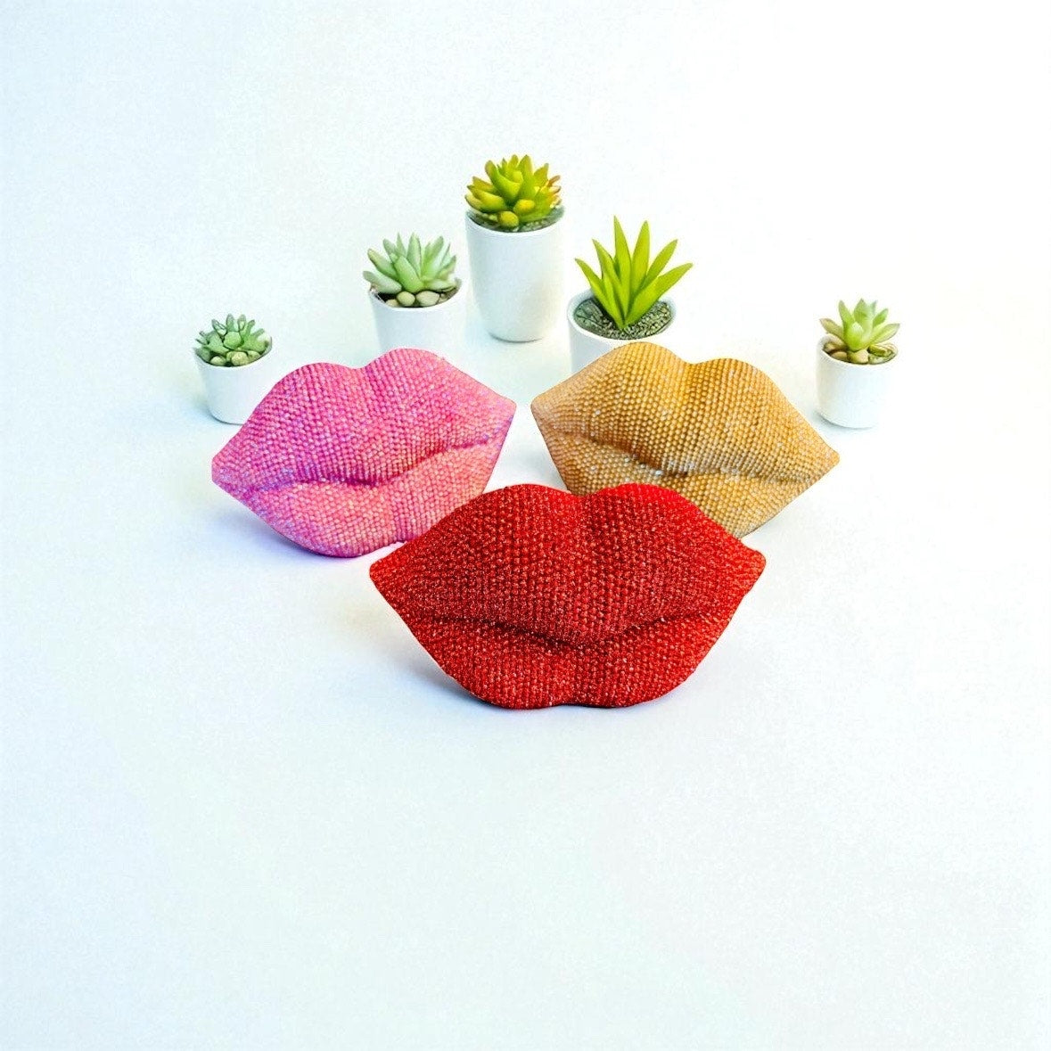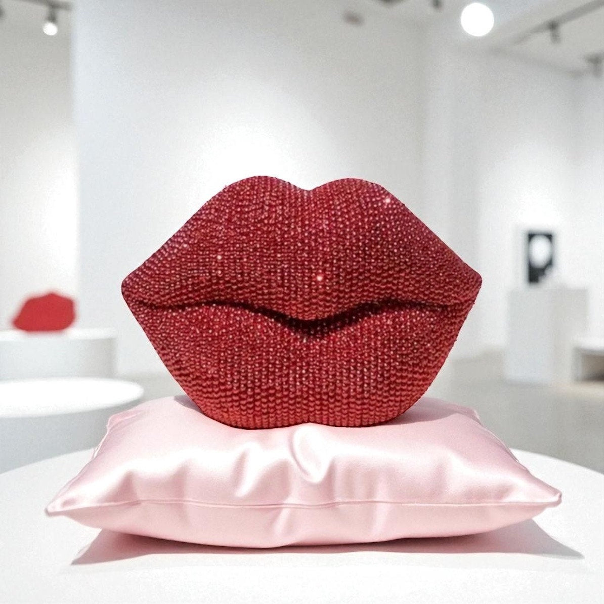 1 PC DECOR: Red Glitter Beaded Resin Textured Lips Statue w/Sleek Finish, NIB