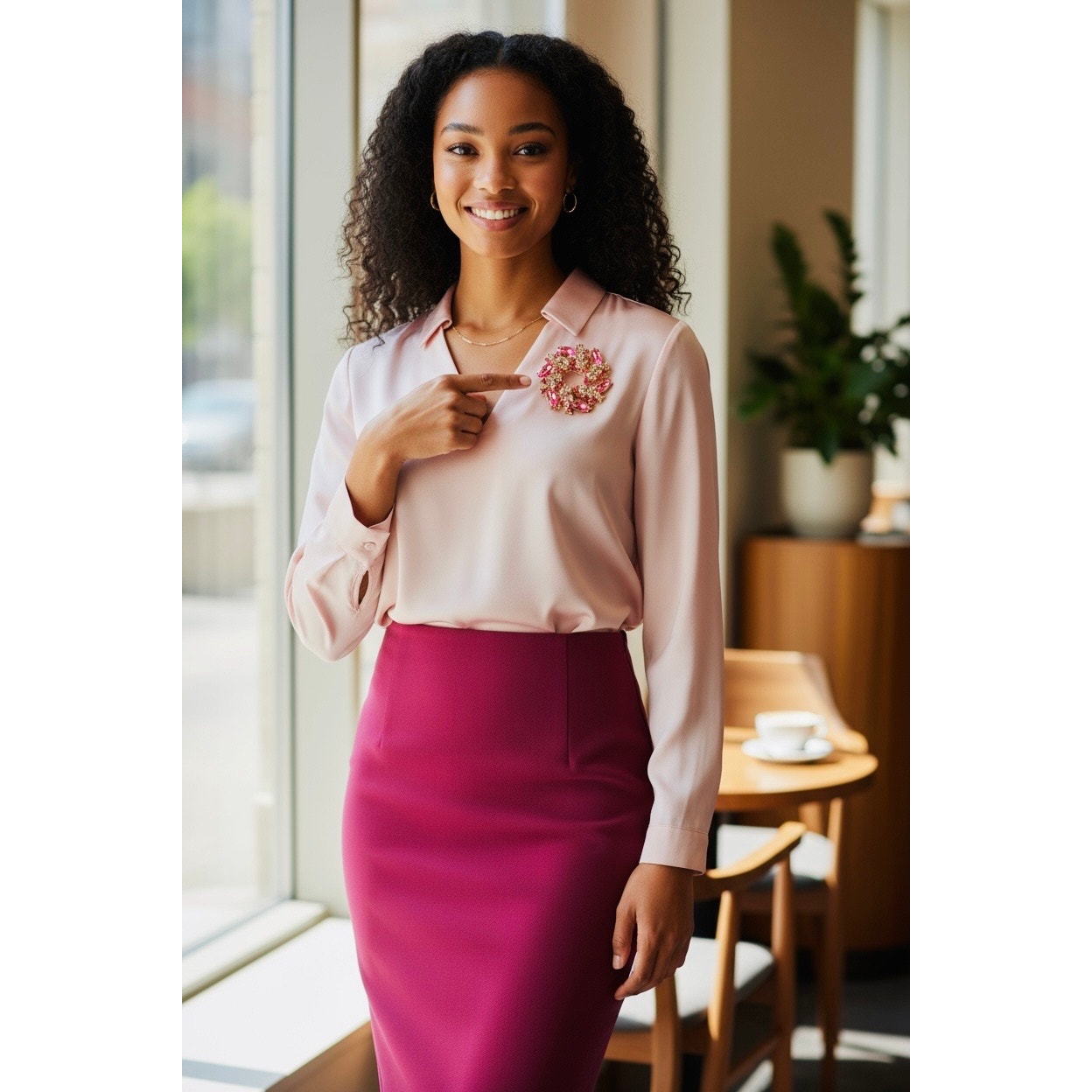 BROOCH: Vintage Style Elegant Pink Gold Tone, & White 3D Pin w/Sparkling Gemstones, NIP